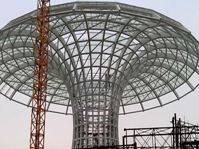 二、球形网架结构因其结构新颖,受力合理,自重轻、用钢量低等优点。如大型体育场馆球形巩义螺栓球网架、公共场馆球形网架、电厂巩义螺栓球网架、水泥工业球形网架、仓储物流球形网架、巩义干煤棚工业球形网架、巩义收费站巩义加油站球形网架、展览中心、影剧院、商场、航站楼、候车厅、工厂巩义车间、仓库、电视塔等球形螺栓球节点网架。国内球形网架结构主要分为:巩义焊接球节点网架及螺栓球节点网架两种。螺栓球节点网架其构件工厂内加工量较大,现场安装便捷,适用于现场工期紧,巩义施工条件、用电量受制约,网架形状复杂、巩义杆件定位困难的异形结构。螺栓球节点球形网架系统基本由巩义杆件、螺栓球、支撑支座等组成。按照节点形式可分为交叉巩义桁架体系、四角锥体系、三角锥体系等。支撑方式多为固定支座支撑。对于大面积、大跨度及有特殊受力或伸缩要求的网架结构可采用橡胶支座、滑移支座、球铰支座等支撑形式,以满足结构自身的受力稳定、均衡,便于内力释放等设计要求。